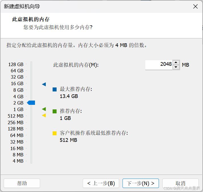 内存和处理选择一样,也是要根据实际的需求分配。如果在以后的使用过程中,发现内存不够,是可以再增加的。此处我选择了2G,点击“下一步”