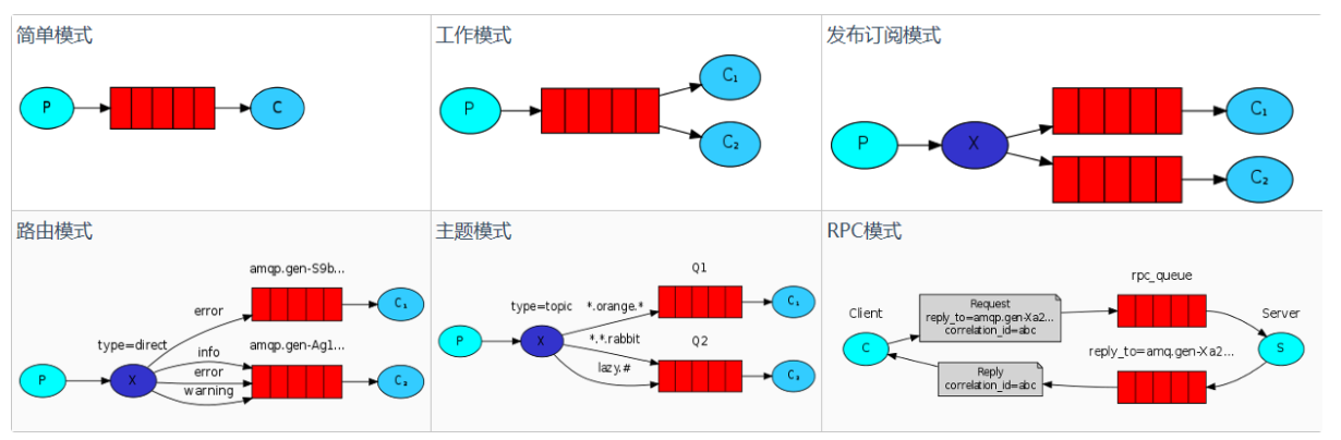 不同协议间的区别,其中AMQP0-9-1是RabbitMQ的默认协议,下文都是基于此协议进行描述。
