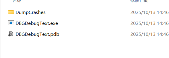 此时,当出现运行崩溃时,将会弹出提示框,提示异常捕获,并在exe所在目录中出现“DumpCrashes”文件夹,在文件夹中存在以异常出现日期时间为文件名的.dmp后缀文件(此项目为了测试而设置了明显的崩溃问题)
