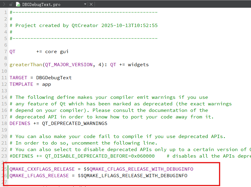 QMAKE_CXXFLAGS_RELEASE = $$QMAKE_CFLAGS_RELEASE_WITH_DEBUGINFO