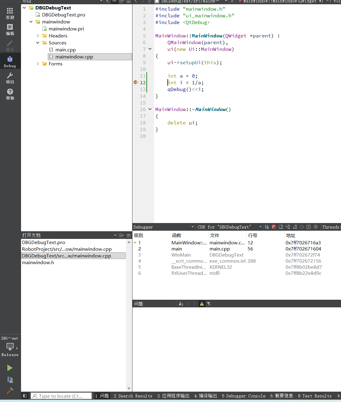 注意:需要先在.pro文件里加入LIBS += -lDbgHelp