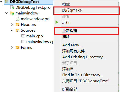 在项目的.pro文件中添加如下设置,并右键项目,按照顺序依次选择qmake、重新构建项目