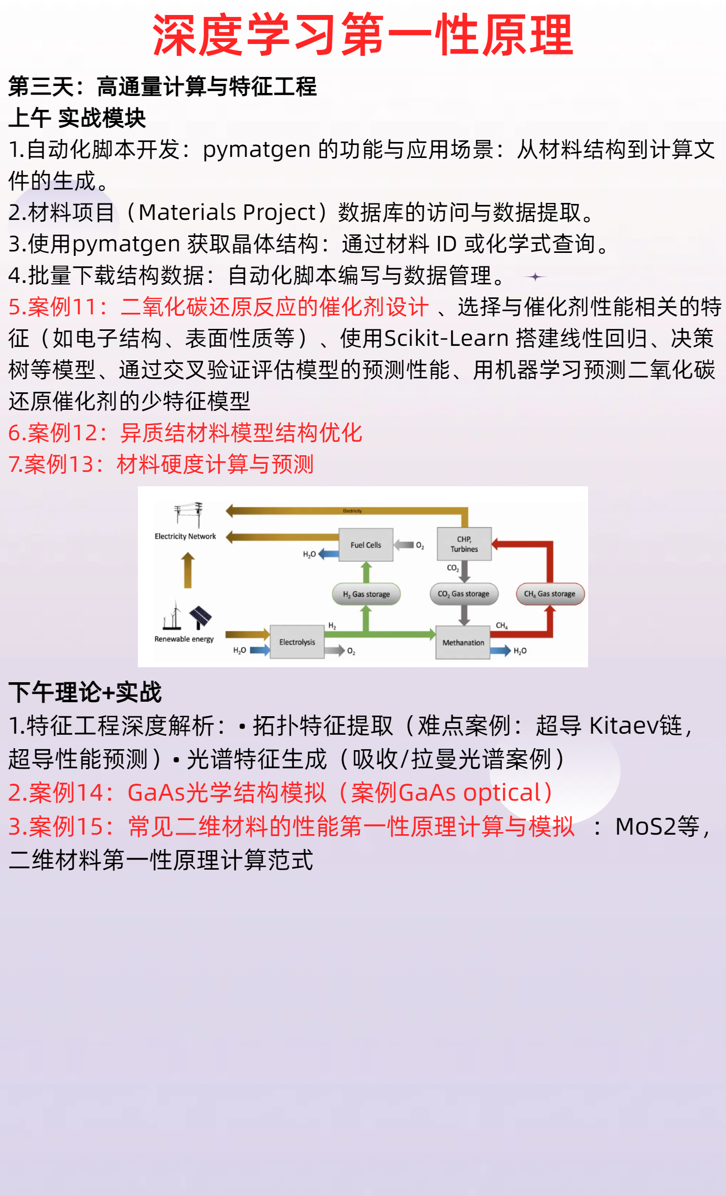 3.材料特征工程学习:构建二维材料拓扑/光谱特征,开发材料性能预测模型(如催化剂、硬度)
