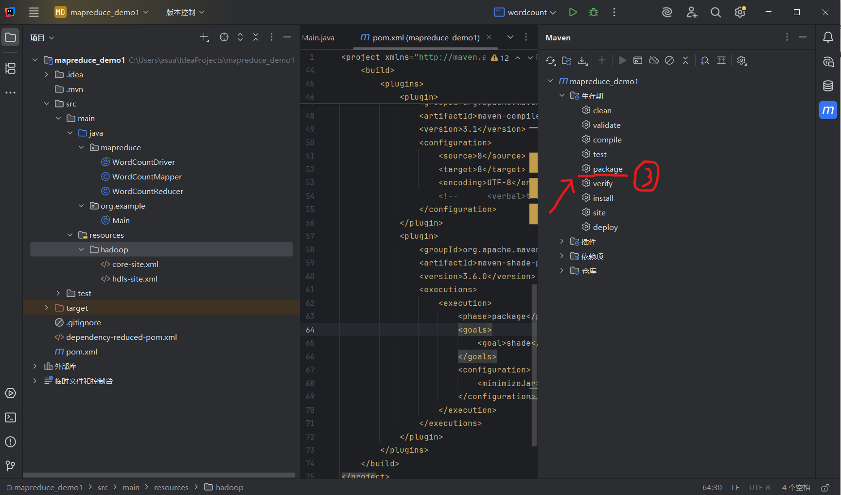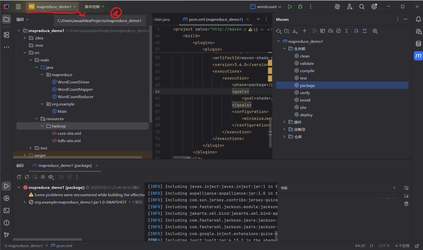 将 MapReduce 程序打成 JAR 包并在 Linux 虚拟机的 Hadoop 集群上运行