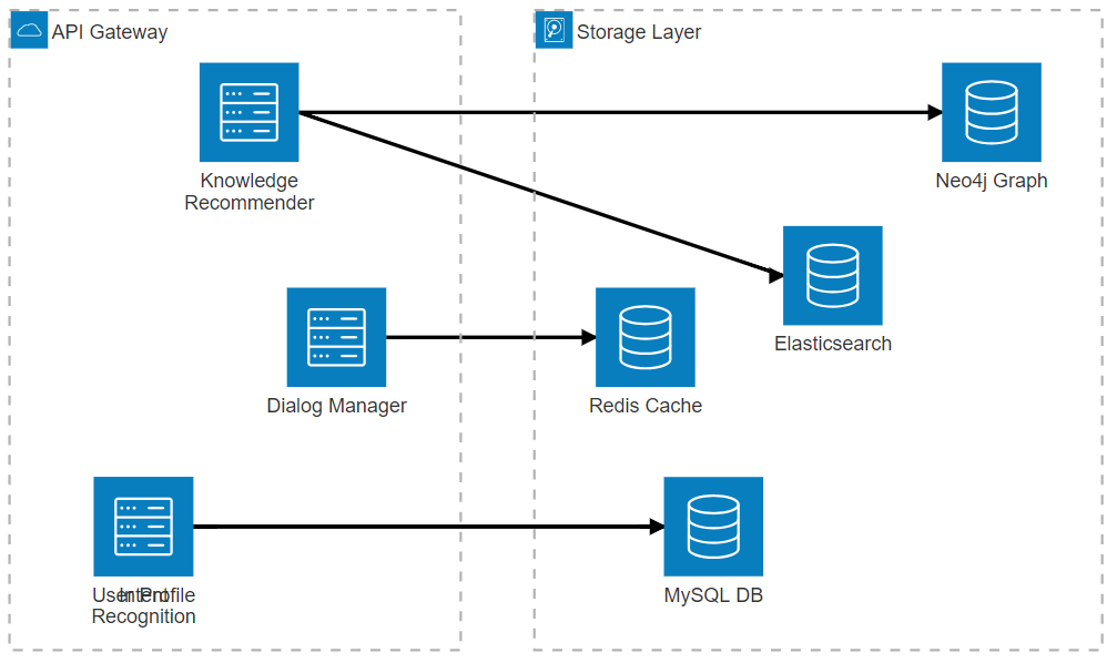 电商智能客服系统采用微服务架构,主要包含对话管理、意图识别、知识推荐、用户画像四个核心服务模块。
