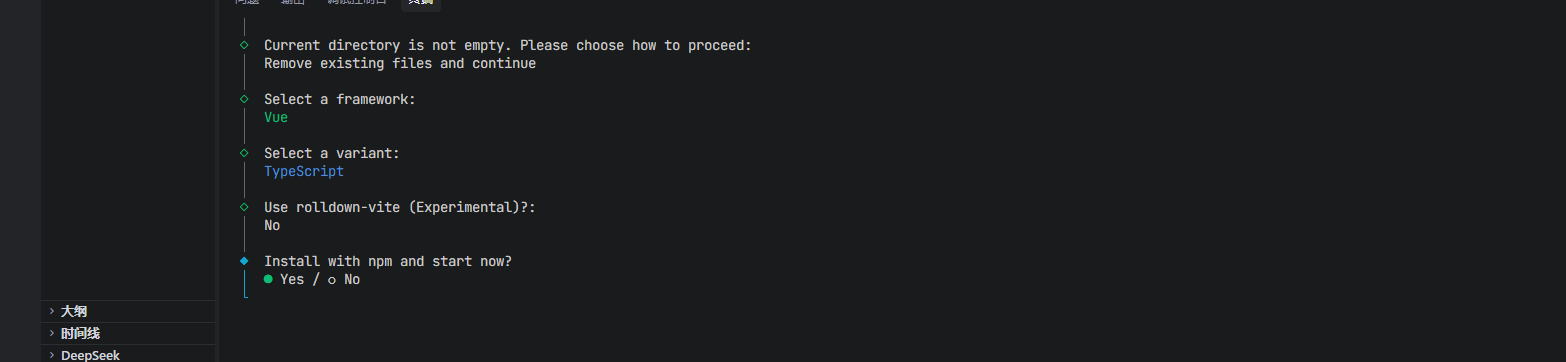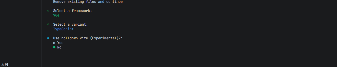 - ○ Yes - 选择使用 rolldown-vite(实验性版本)