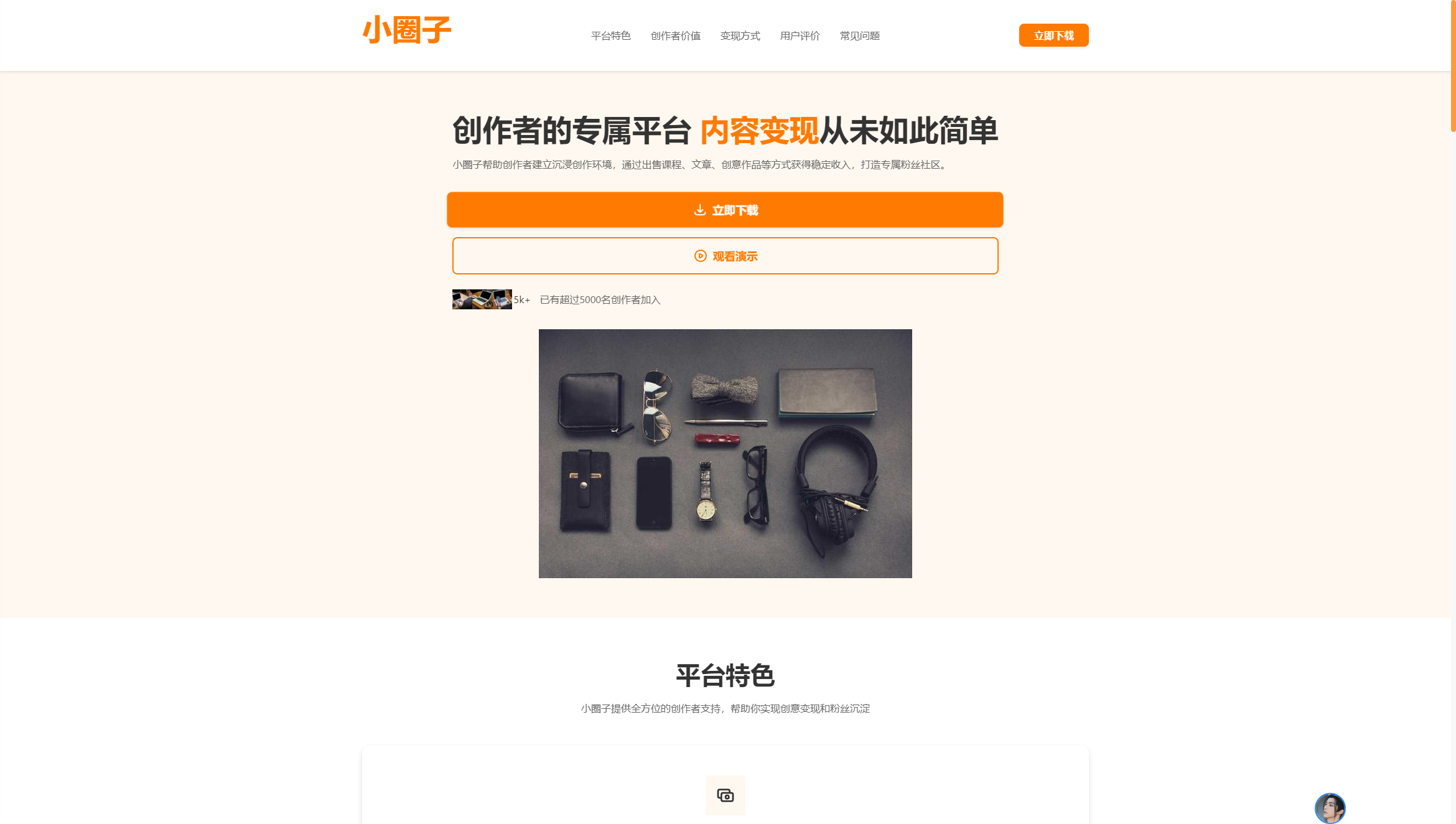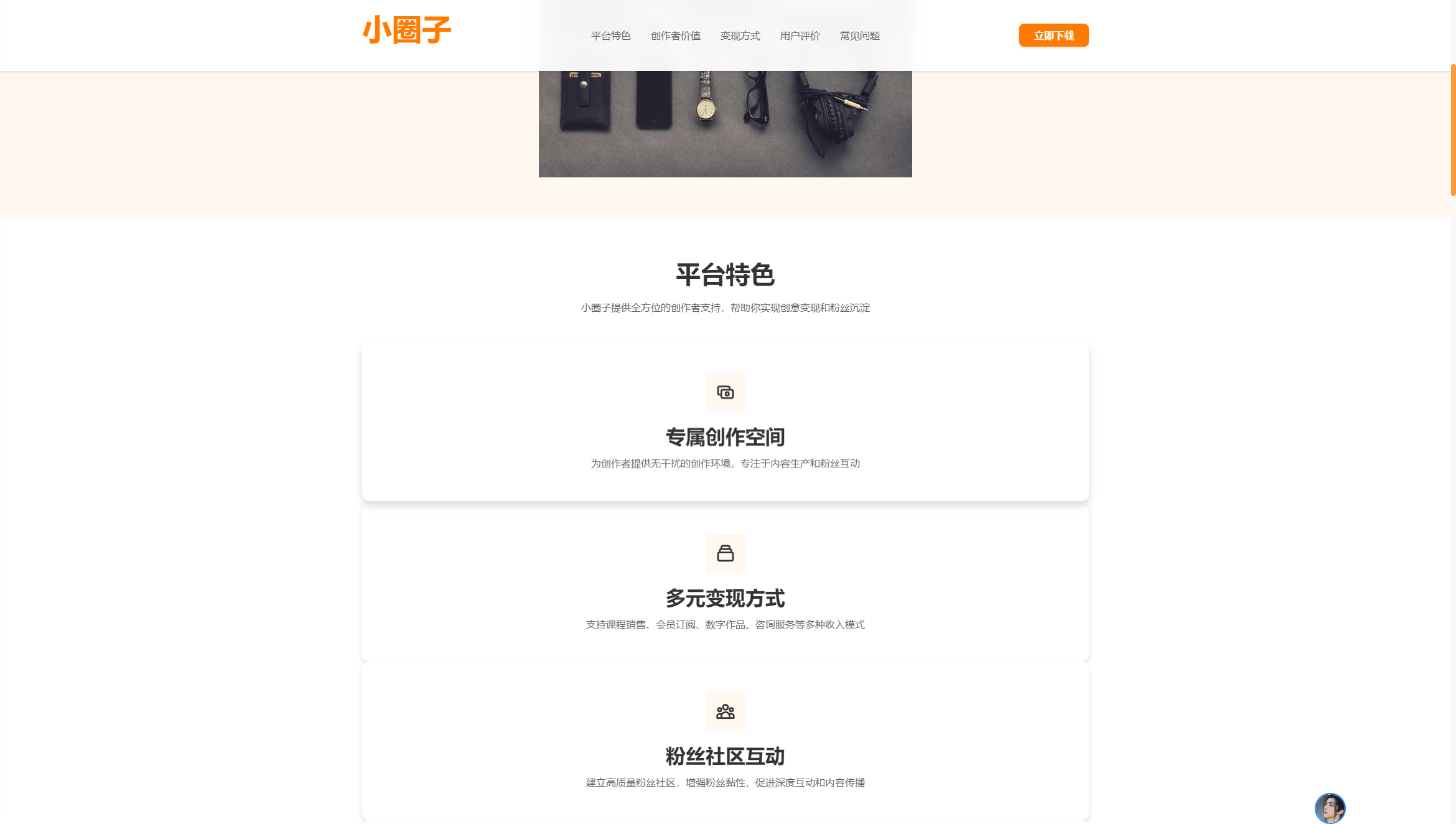 };const faqs = [{question: '小圈子适合哪些类型的创作者?',answer: '小圈子适合各类内容创作者,包括但不限于:文章作者、插画师、摄影师、设计师、音乐人、教育工作者、程序员、心理咨询师等。只要你有专业知识或创意内容想要分享并变现,都可以加入小圈子。'},{question: '如何在小圈子上获得收入?',answer: '小圈子提供多种变现方式:1) 出售在线课程;2) 设置会员订阅;3) 销售数字作品(如电子书、插画、音乐等);4) 提供咨询服务;5) 接收粉丝打赏。创作者可以根据自己的内容类型和粉丝需求选择最适合的变现方式。'},{question: '小圈子收取多少佣金?',answer: '小圈子采用阶梯式佣金模式:新创作者前3个月佣金为10%,之后根据创作者等级和收入规模,佣金比例在10%-20%之间浮动。我们致力于为创作者提供更公平的收入分配,让创作者获得更多收益。'},{question: '如何吸引粉丝加入我的圈子?',answer: '小圈子提供多种粉丝运营工具:1) 内容预览功能,让潜在粉丝了解你的内容价值;2) 会员专属社群,增强粉丝黏性;3) 定期活动和直播,促进互动;4) 数据分析工具,帮助你了解粉丝需求,优化内容策略。'},{question: '小圈子如何保护创作者的知识产权?',answer: '小圈子高度重视知识产权保护:1) 所有内容采用数字水印技术;2) 严格的内容访问控制机制;3) 支持DMCA投诉;4) 提供版权登记指引;5) 对侵权行为零容忍,发现即严肃处理。'}