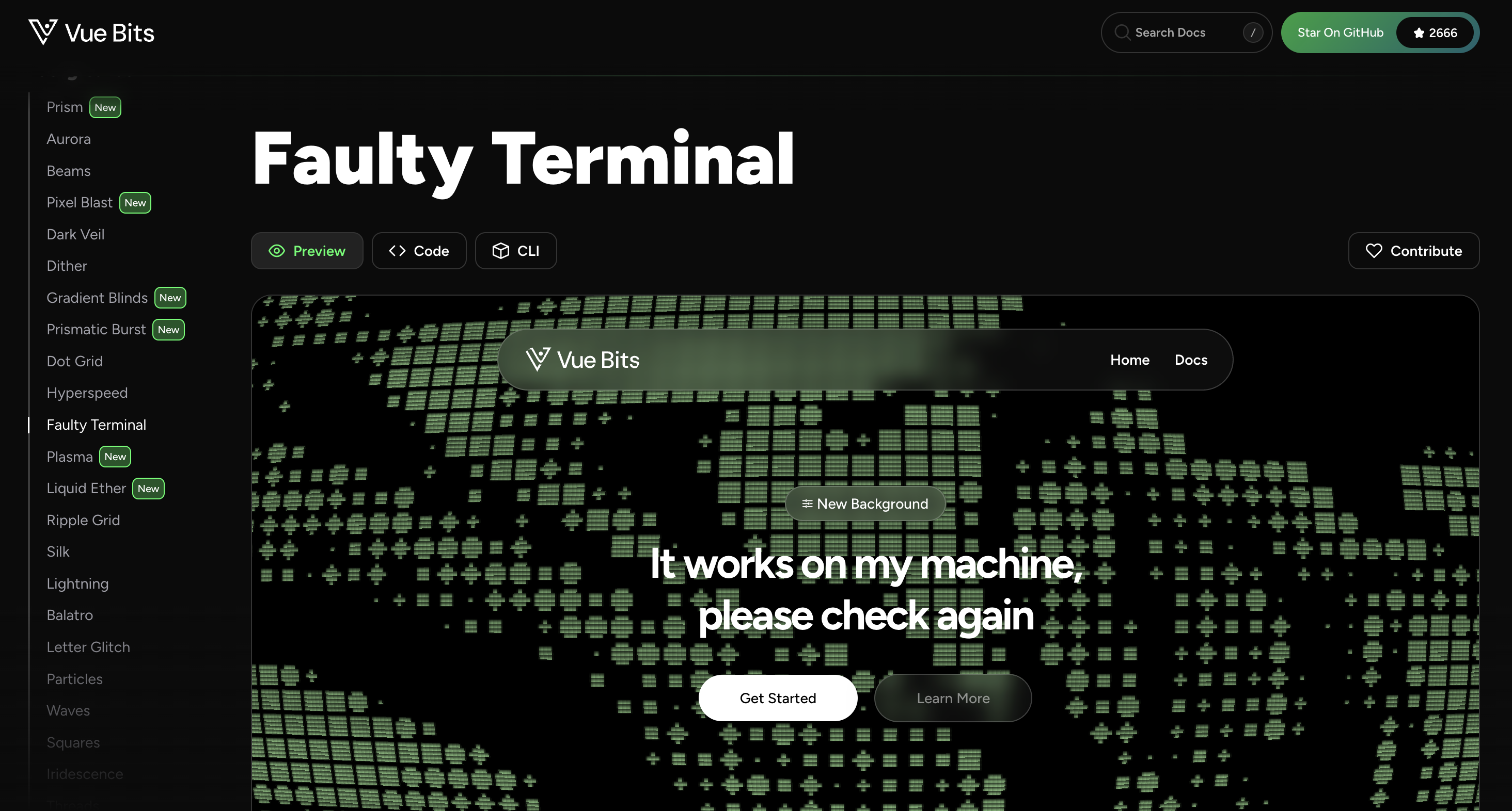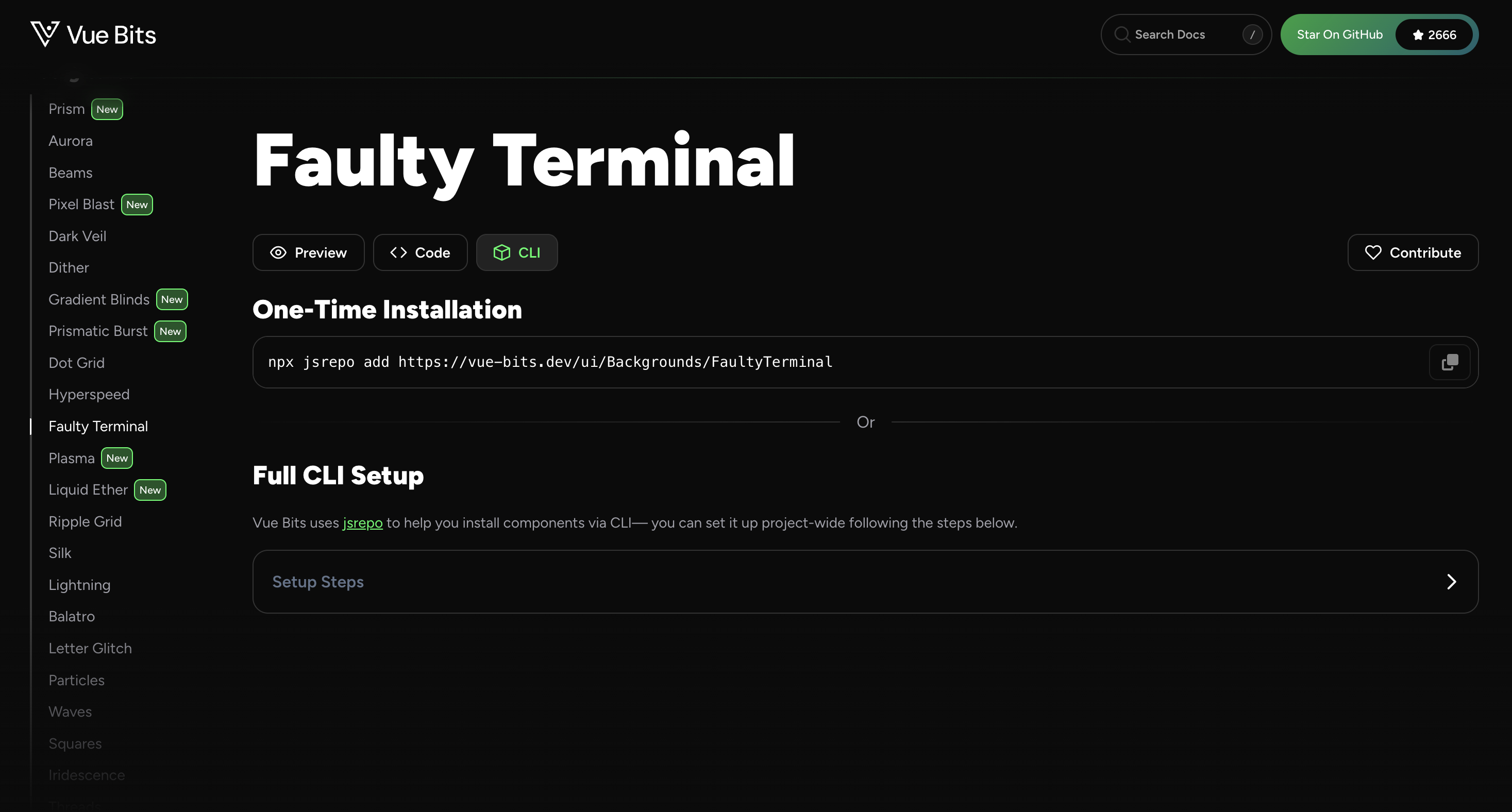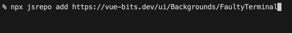 npx jsrepo add https://vue-bits.dev/ui/Backgrounds/FaultyTerminal