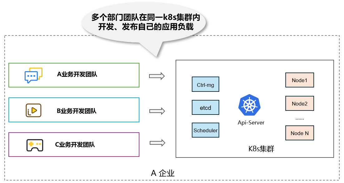 一种是多团队场景,即同一企业内多个团队共享一个k8s集群,每个团队可以操作一个或多个工作负载。 这些工作负载与位于相同或不同集群上的其他负载进行通信。