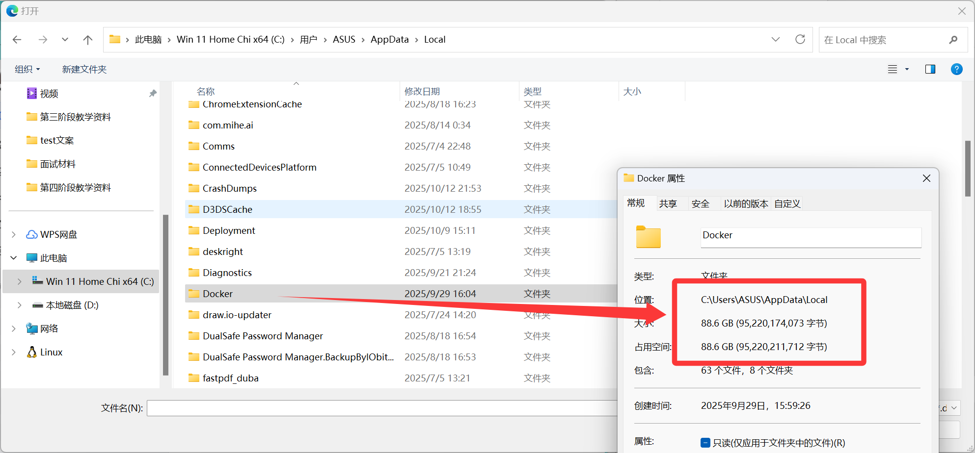Windows系统下,Docker通常使用WSL2。WSL2本质上是一个虚拟机,而Docker的所有数据都存储在WSL2的虚拟磁盘中(以.vhdx