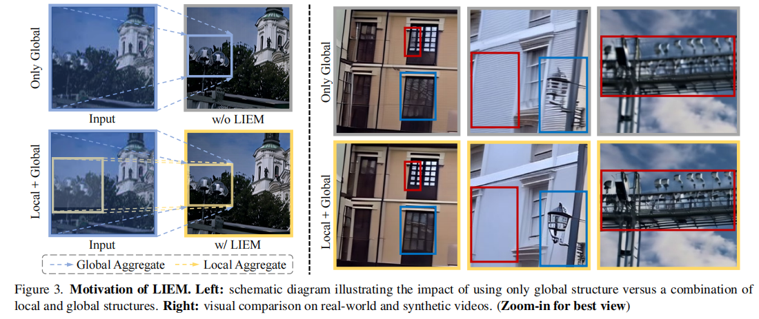 图3(左) 的可视化对比显示,使用LIEM后,局部细节更加清晰,伪影显著减少。