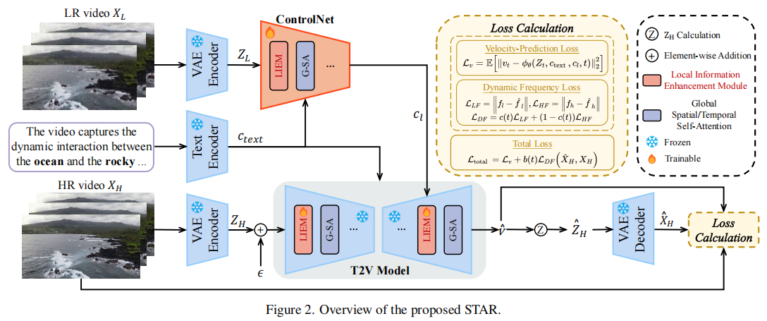 - 提出STAR框架:首次将T2V扩散先验引入真实世界VSR,实现高质量的时空恢复。