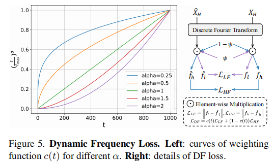 因此,作者提出动态频率损失(DF Loss),在不同扩散步中动态调整对低频和高频的约束。