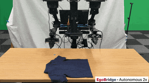 EgoBridge效果展示2:机器人折叠一件随机放在桌子上的Polo衫
