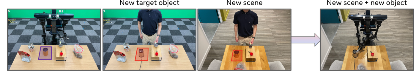 ■ 数据设置:机器人数据仅覆盖“原场景+罐”(50条演示),人类数据覆盖“原场景+罐”“新场景+研磨机”(2小时时长),测试对“新物体+新场景”的观测泛化能力。