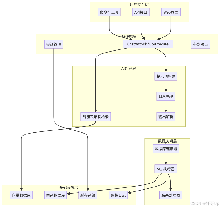 DB-GPT的Text2SQL采用了清晰的分层架构,每层负责特定的功能: