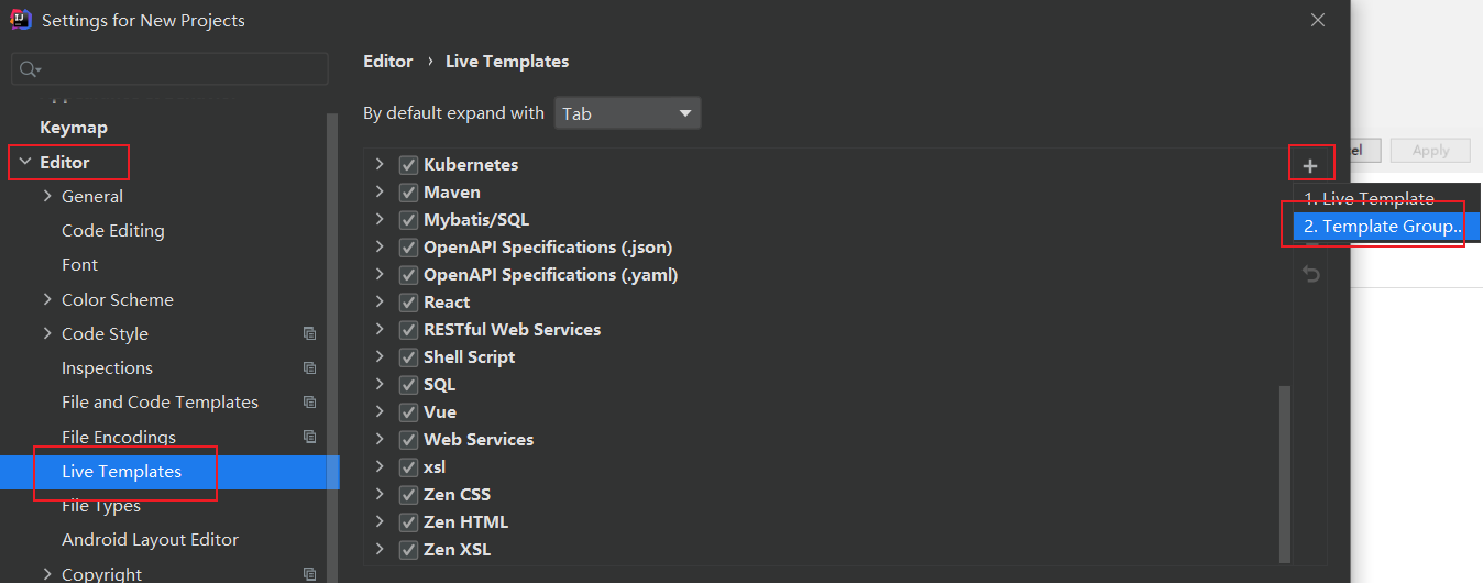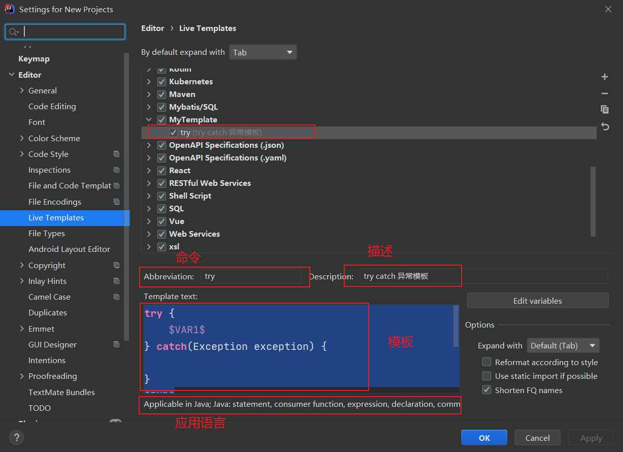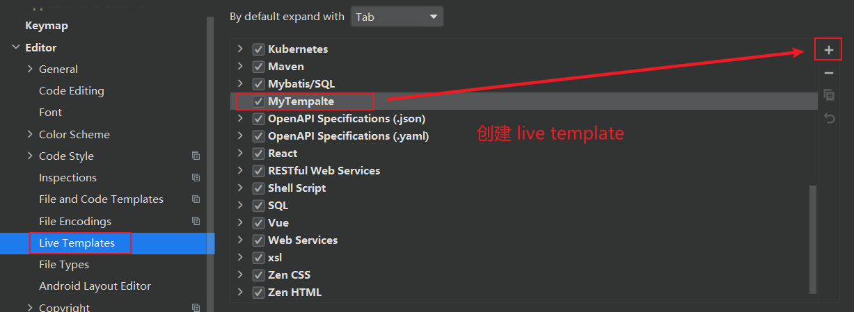 创建名称为:MyTempalte 的模板组,并在该模板组下创建模板: