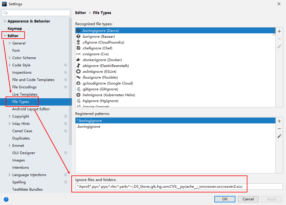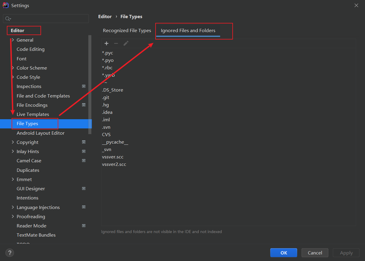 选项卡中点击小加号或者小减号添加或者删除要忽略展示的文件