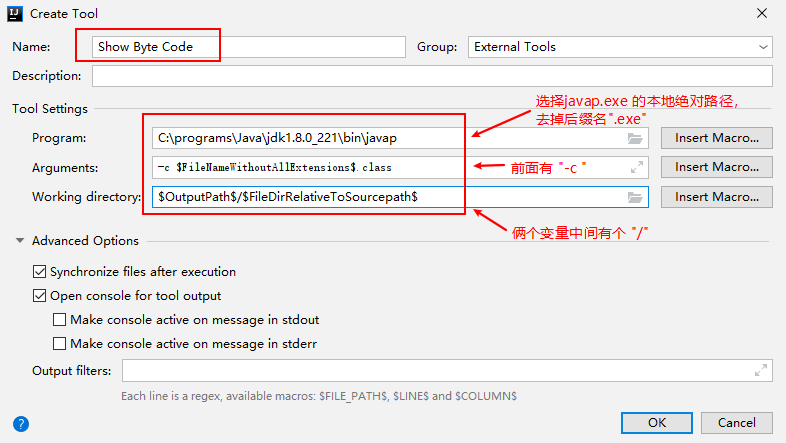 - Program 需要指定你 JDK 目录中 javap 的位置