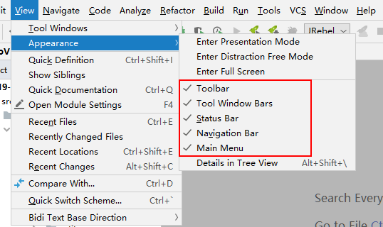 ctrl+e | ctrl+e | View->Recent Files | 最近打开的文件 |