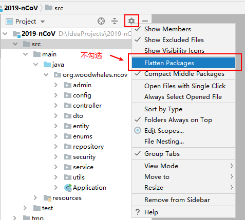 点击项目资源管理器上的小齿轮,不勾选 Flatten Packages: