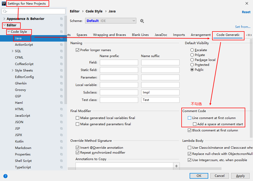 IDEA 单行默认注释的时候,”//“在行的最开头: