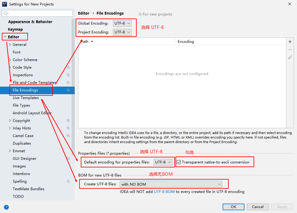 File > Other Settings > Preferences for New,这样对每个新建的项目都是使用这个统一配置,如果配置的是 File > Settings 仅仅对本工程有效。