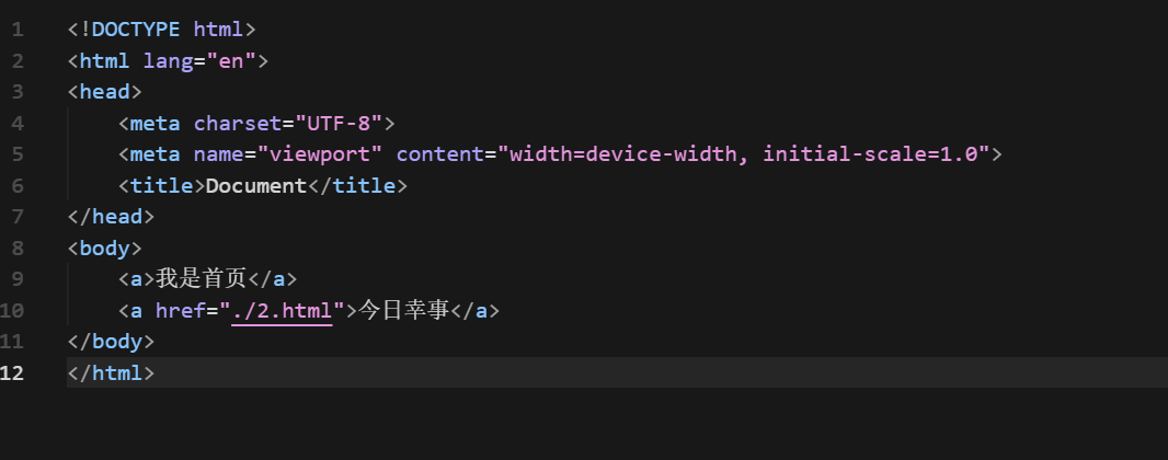 <a href="./2.html">今日幸事</a> href里面填路径,点击跳转(路径不要写错)