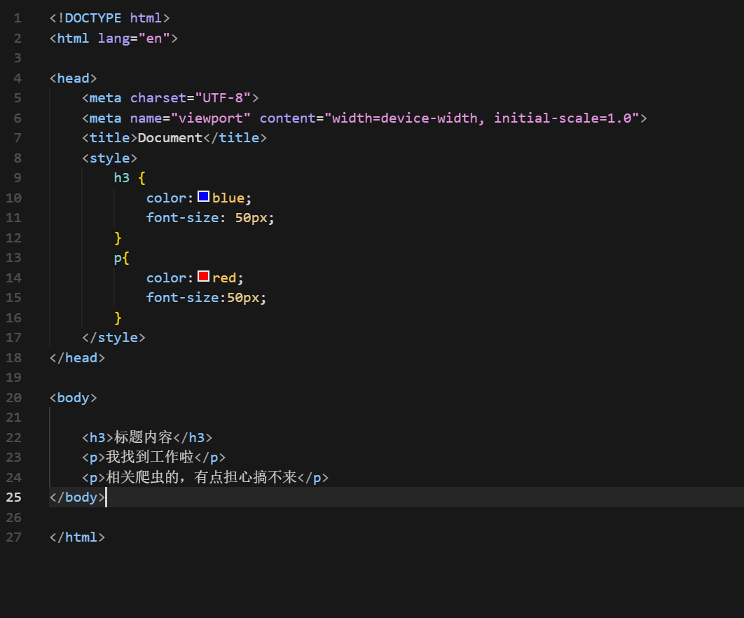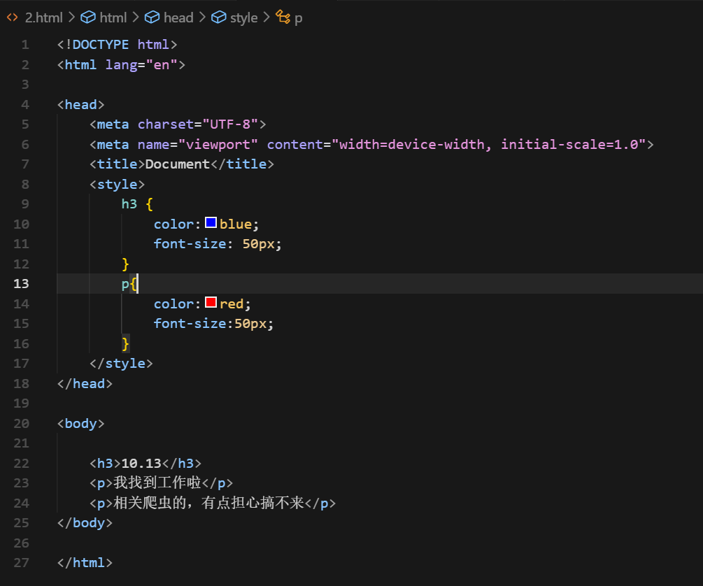当单个文件需要特殊样式时,就应该使用内部样式表。在head里面添加一个<style></style>里面写css
