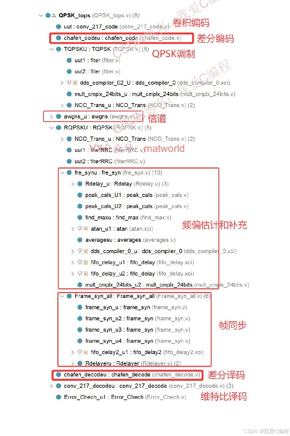 《【仿真测试】基于FPGA的完整QPSK通信链路实现,含频偏锁定,帧同步,定时点,Viterbi译码,信道,误码统计》