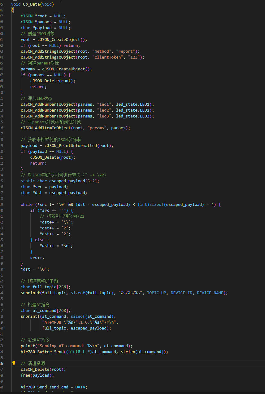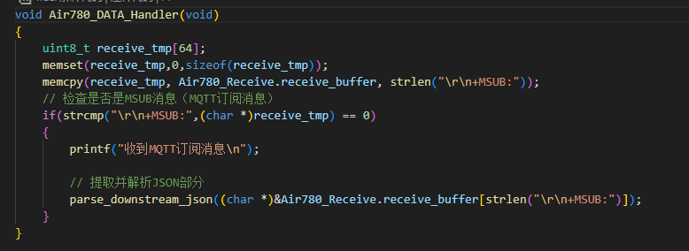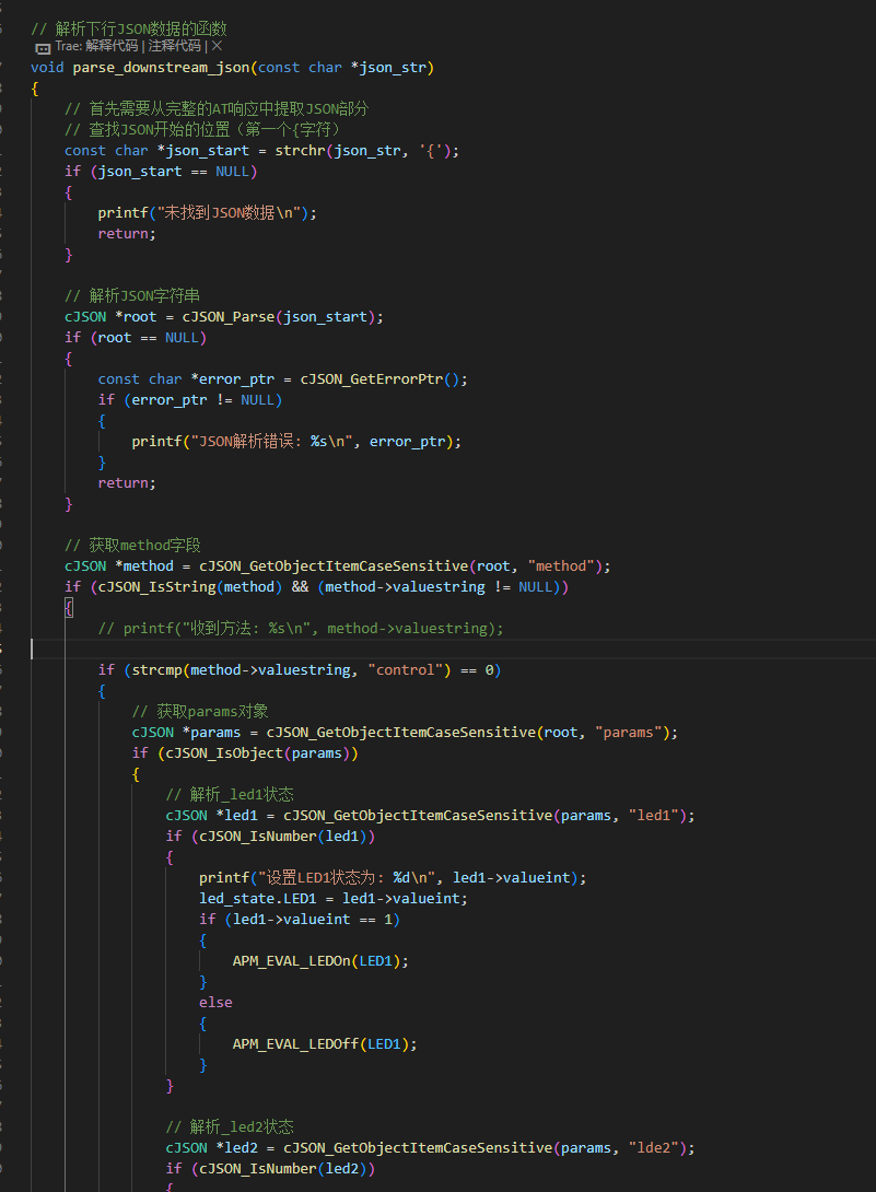 然后就是解析mqtt,这里我只截到led1,后边都一样的,收到控制指令马上再发送当前状态就好