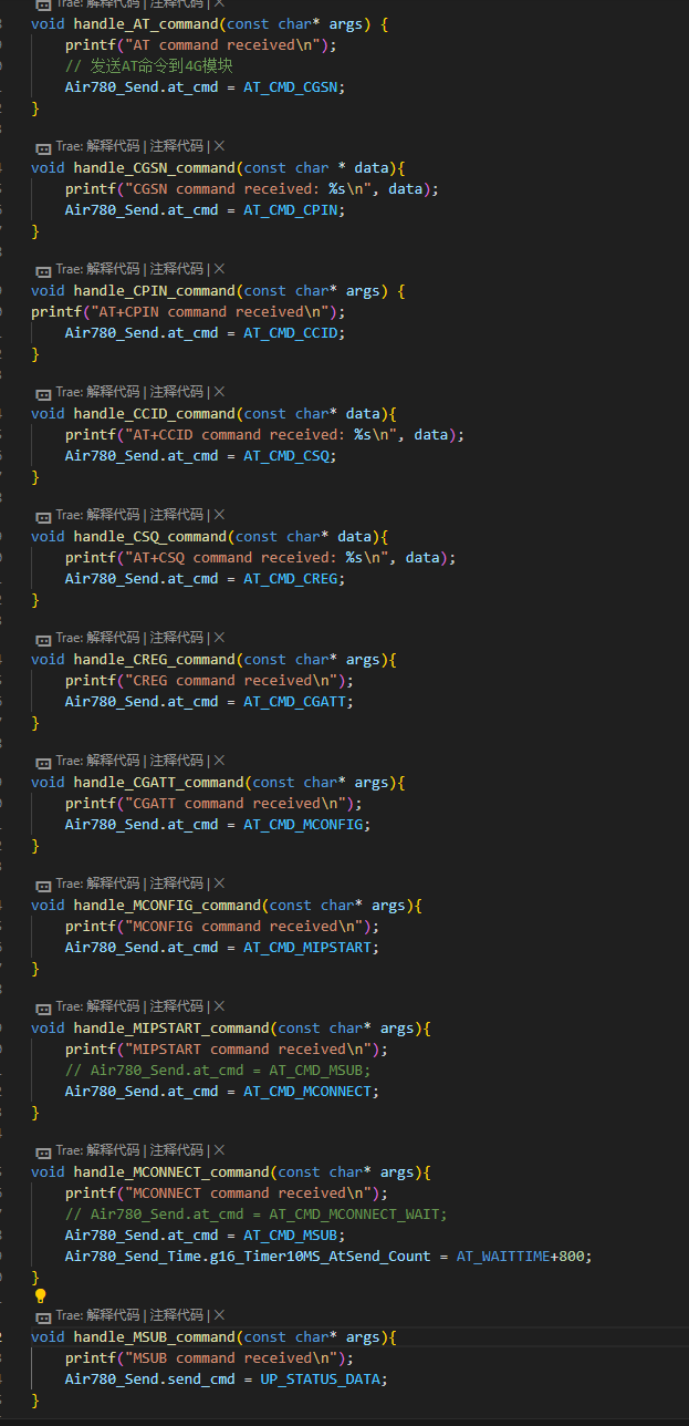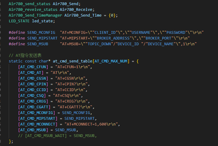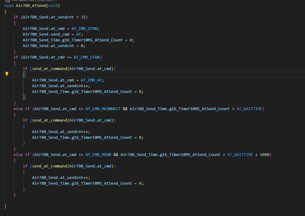 然后这个发送任务调用发送命令的函数就好,因为模块mqtt连接部分的回复的时长不一样,所以需要区分一下发送间隔时间,时间管理是我做了一个简单的裸机OS,就不多说了