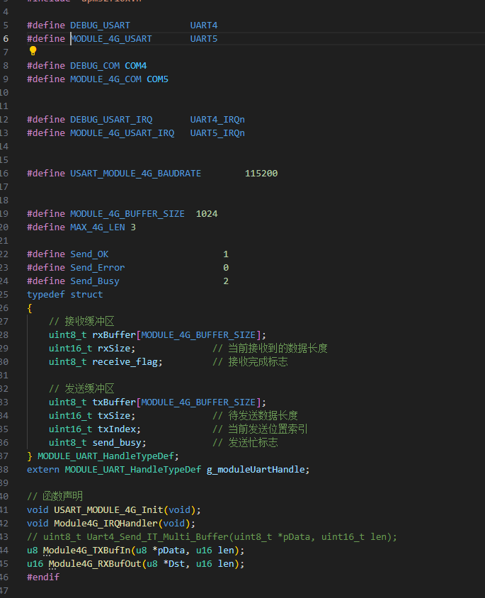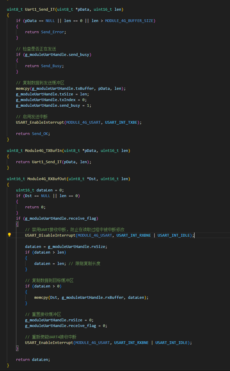 这里就封装成Module4G_TXBufIn和Module4G_RXBufOut给应用层使用