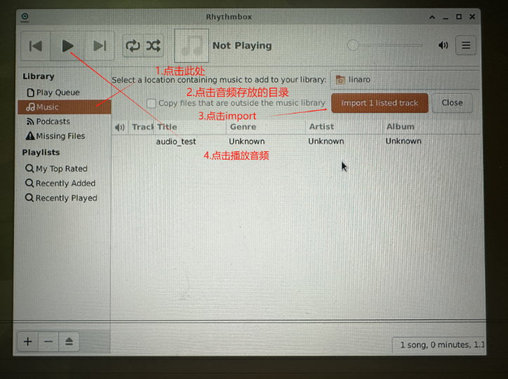 系统自带的软件是Rhythmbox,若需要其他播放器可自行下载