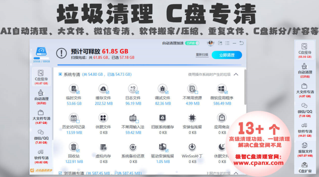 前往极智C盘清理官网免费下载使用。https://www.cpanx.com/