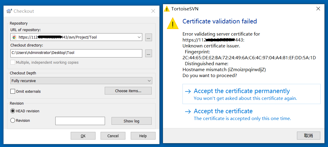 下载服务端VisualSVN-Server-2.5.26和客户端TortoiseSVN-1.8.10.26129-x64-svn-1.8.11
