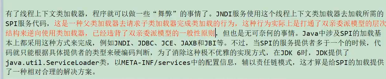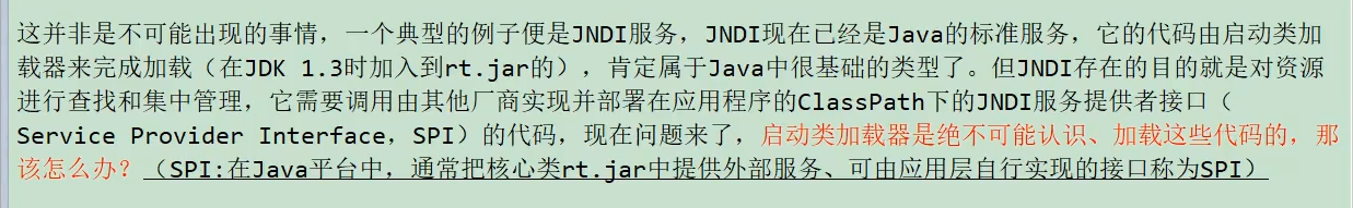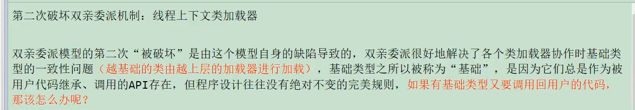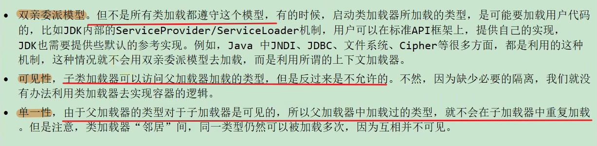 - 检查类是否加载的委托过程是单向的,这个方式虽然从结构上来说比较清晰,使各个ClassLoader的职责非常明确,但是会带来一个问题,即顶层的ClassLoader无法访问底层的ClassLoader所加载的类。
