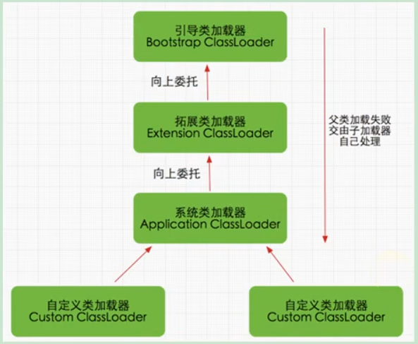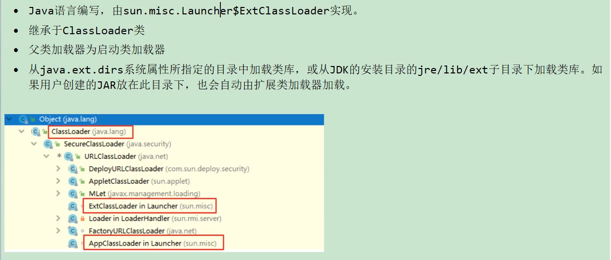 启动类加载器是使用C++实现的,其他的加载器都是使用Java来实现的。