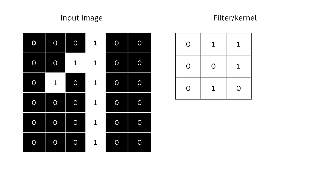 (0×0)+(0×0)+(0×1)+(0×1)+(0×0)+(1×0)+(0×0)+(1×1)+(0×1) = 1