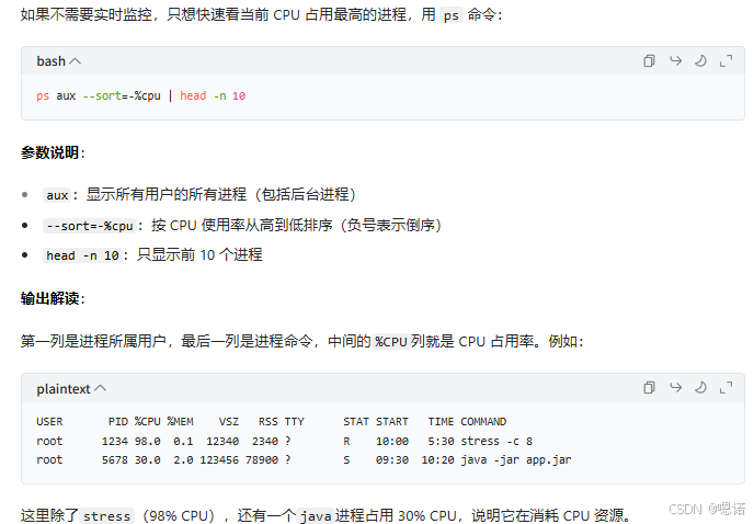 异常信号(如 CPU 超 100%、Swap 使用、进程崩溃)出现后,不要立刻下结论,按 “先查数值→再查系统→最后查机器” 的顺序排查,避免误判。