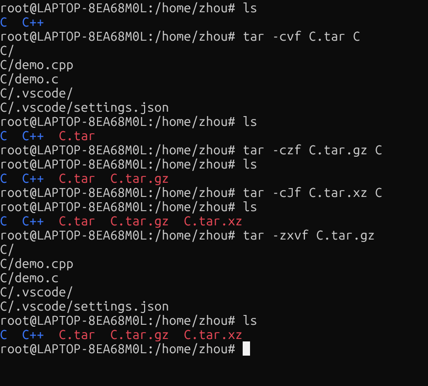 语法格式:tar [选项] -f [打包后的文件名] [被打包文件名]