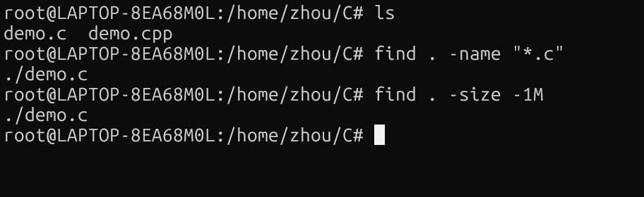 -size:按照文件大小查找 find /home -size +1M 查找当前目录下大于1MB的文件