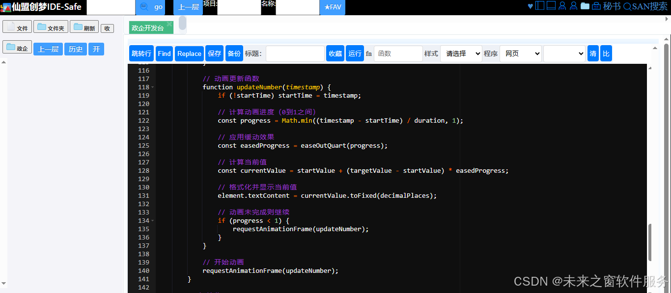 在东方仙盟的筑基期,修仙者们开始探索如何运用灵术赋予灵网世界以生动奇妙的变化。这段代码犹如一本蕴含神秘灵力的灵诀,围绕网页数字动画函数展开,为网页打造了独特的平滑数字滚动动画效果。它仿佛是一座搭建在灵网中的奇妙幻数舞台,通过精心设计的函数,让数字如灵动的灵蝶般平滑地变化,尤其在展示汇总金额时,为观者带来一种视觉上的奇妙体验,恰似在灵网的虚拟空间中开启了一扇充满奇幻数字魔法的大门。