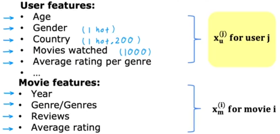 如上图所示,假设此时已经拥有了部分用户与电影特征数据,分别用和