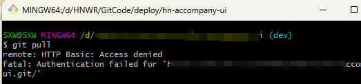 重新再git 目录中执行拉去 git pull 命令,再弹出的会话框中重新输入用户名,密码,问题解决。