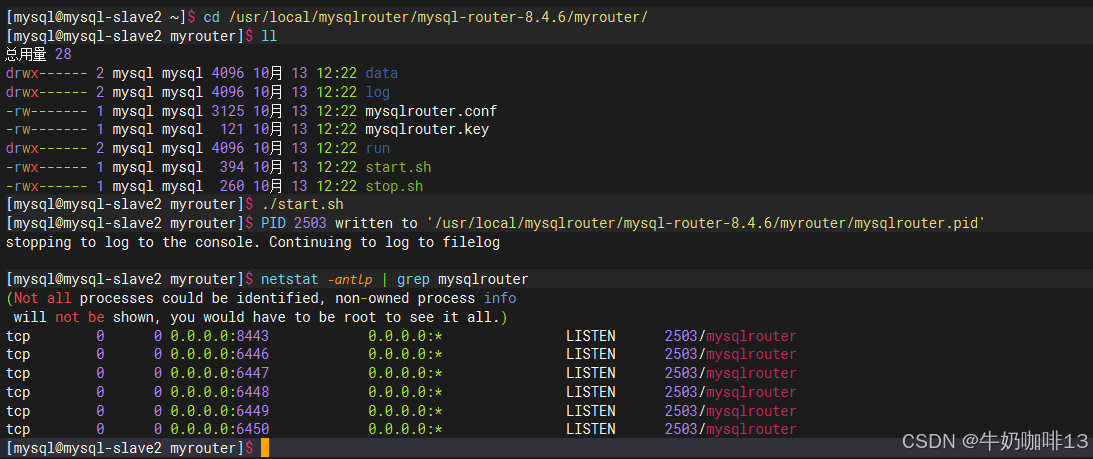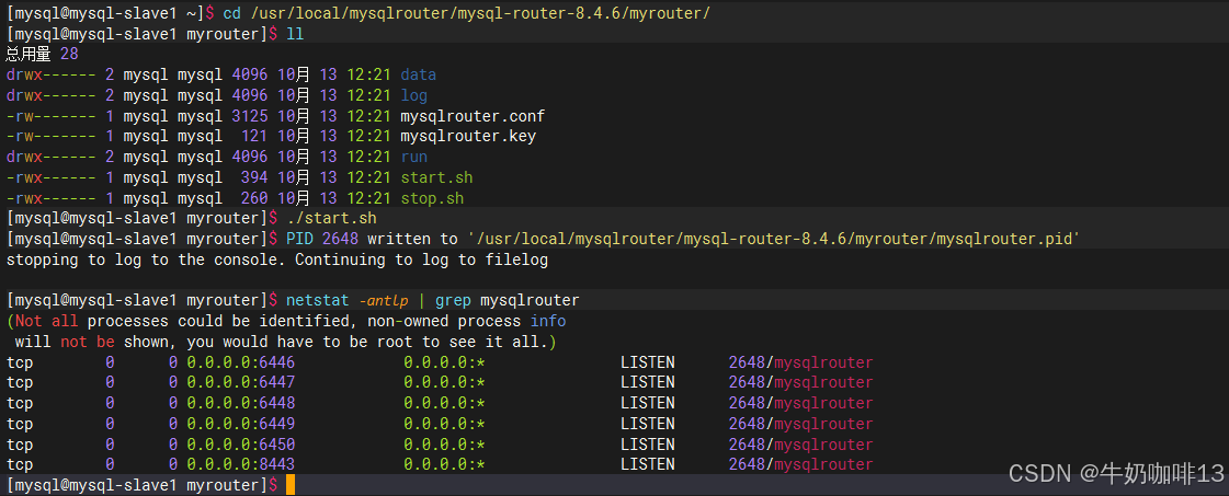 cd /usr/local/mysqlrouter/mysql-router-8.4.6/myrouter/#2-启动mysql router