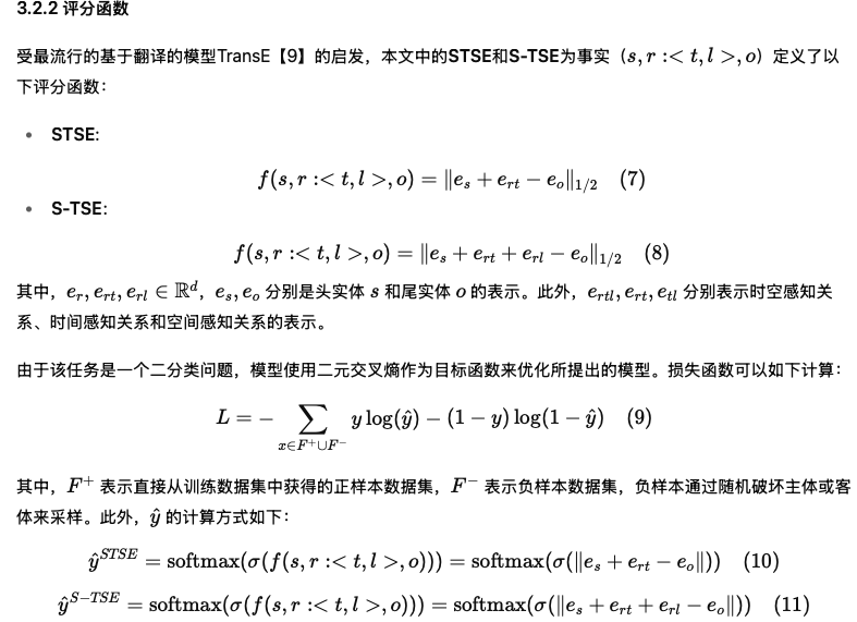 本部分详细介绍了提出的时空知识图谱补全模型。给定一个STKG(时空知识图谱),模型首先旨在学习实体和关系的表示。然后,利用评分函数评估事实的合理性,使得真实的事实能够获得较高的分数。因此,实体和关系的表示可以通过优化适当的成本函数进行学习。最后,根据每个实体和关系的学习嵌入,模型可以预测缺失的实体。