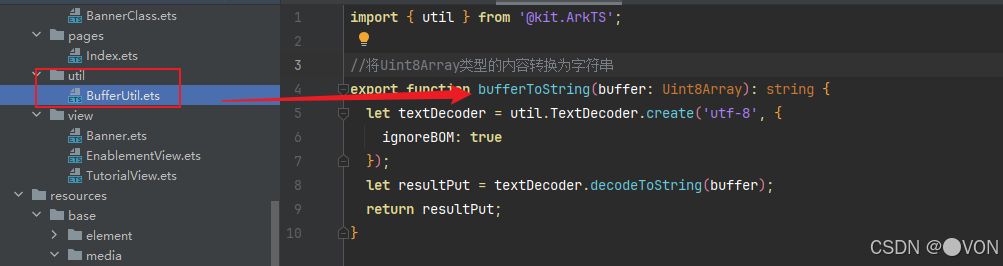 import { util } from '@kit.ArkTS';//将Uint8Array类型的内容转换为字符串