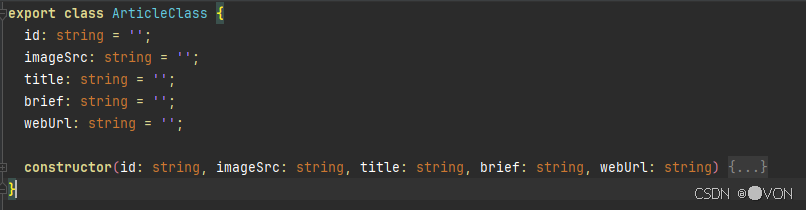 export class ArticleClass {id: string = '';imageSrc: string = '';title: string = '';brief: string = '';webUrl: string = '';constructor(id: string, imageSrc: string, title: string, brief: string, webUrl: string) {this.id = id;this.imageSrc = imageSrc;this.title = title;this.brief = brief;this.webUrl = webUrl;}