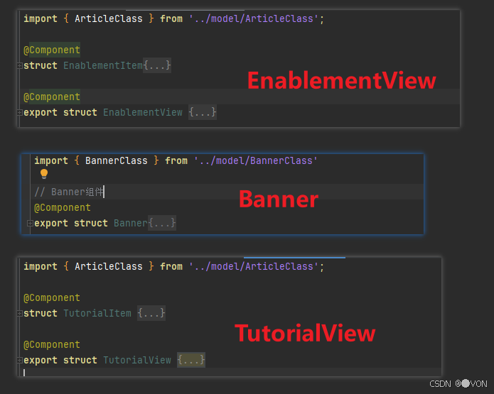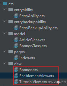 view文件夹主要用于存储UI组件,也就是昨天所写的EnablementView.ets和TutorialView.ets以及Banner.ets组件。